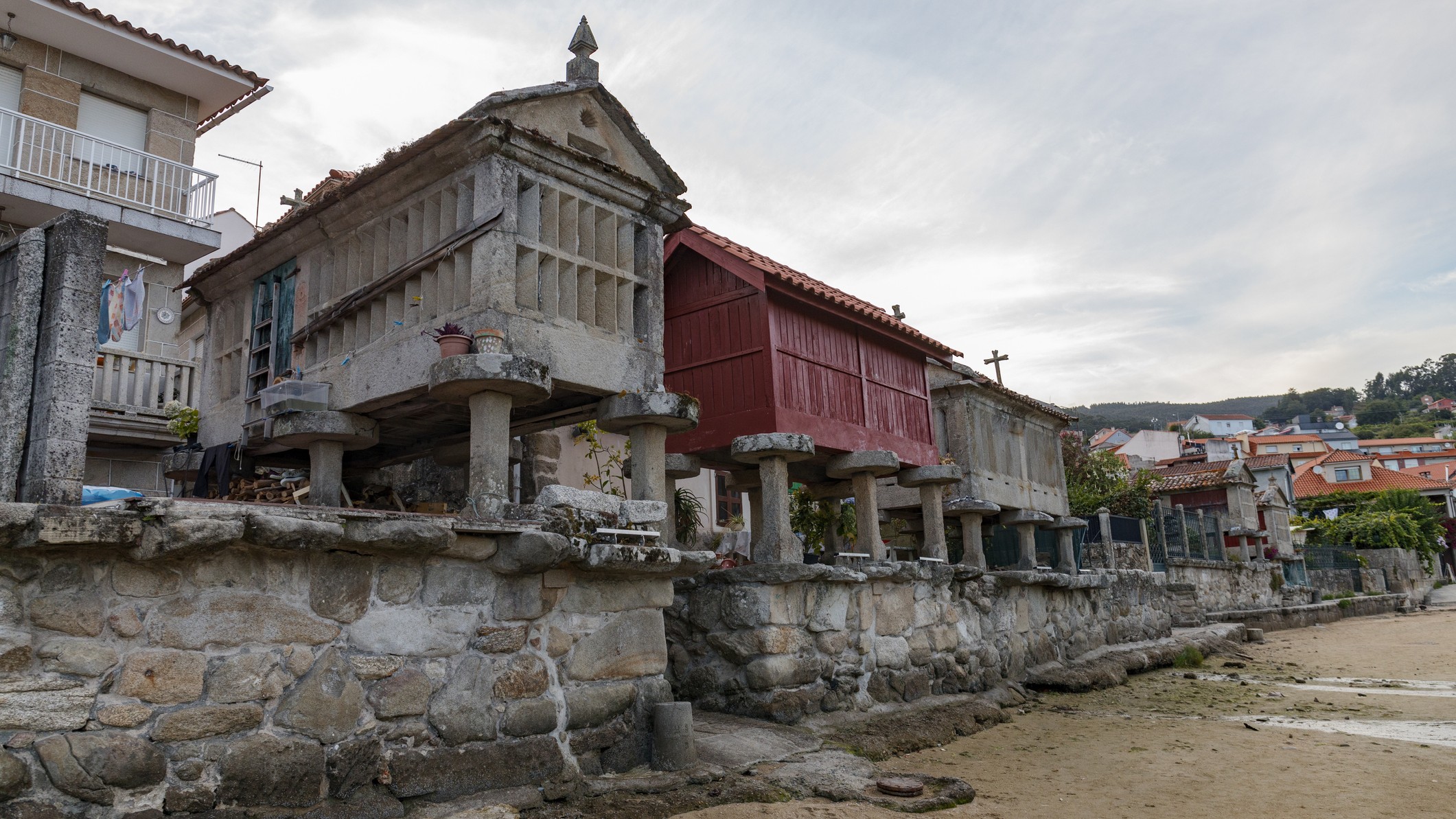 Hórreos xunto a ría de Pontevedra |